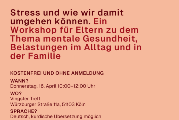 Allgemein 13/04/2026 Gestärkt durch den Alltag – Workshop 16.04. Donnerstag, 10-12 Uhr mit SoliMed Köln e.V im Vingster Treff, Würzburger Straße 11a Inhalte:… B2